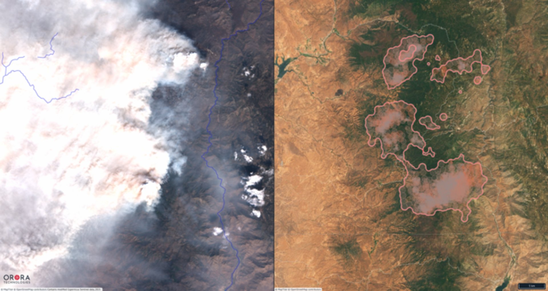 Deteksi dini dan pemantauan waktu nyata (real-time) digunakan selama kebakaran hutan aktif. Menggunakan citra dari 19 satelit dan banyak kamera berbasis darat, sistem perusahaan dapat mendeteksi kebakaran hutan bahkan di daerah terpencil dan kemudian menyajikan visual area dan perkembangan kebakaran dari waktu ke waktu.Di Cagar Alam Khusus Niassa, Mozambik, Wildlife Conservation Society telah memanfaatkan sistem OroraTech dengan baik. Peringatan kebakaran hutan memungkinkan penjaga hutan mencegah sebuah perkemahan dasar terbakar, dengan jarak hanya 100 meter antara kamp dan kobaran api. Sistem ini juga menyediakan analisis kerusakan untuk meninjau polusi udara, asal api, dan area yang terbakar setelah kebakaran hutan terjadi.